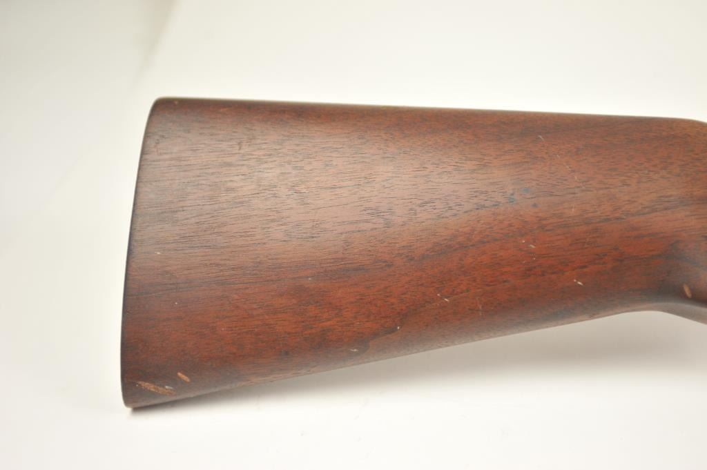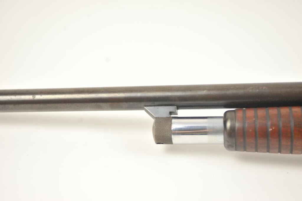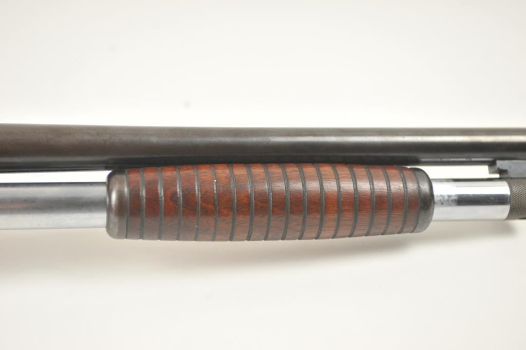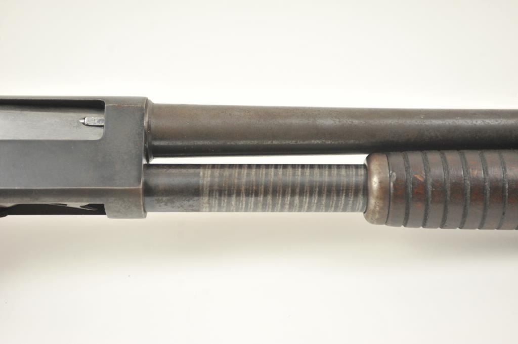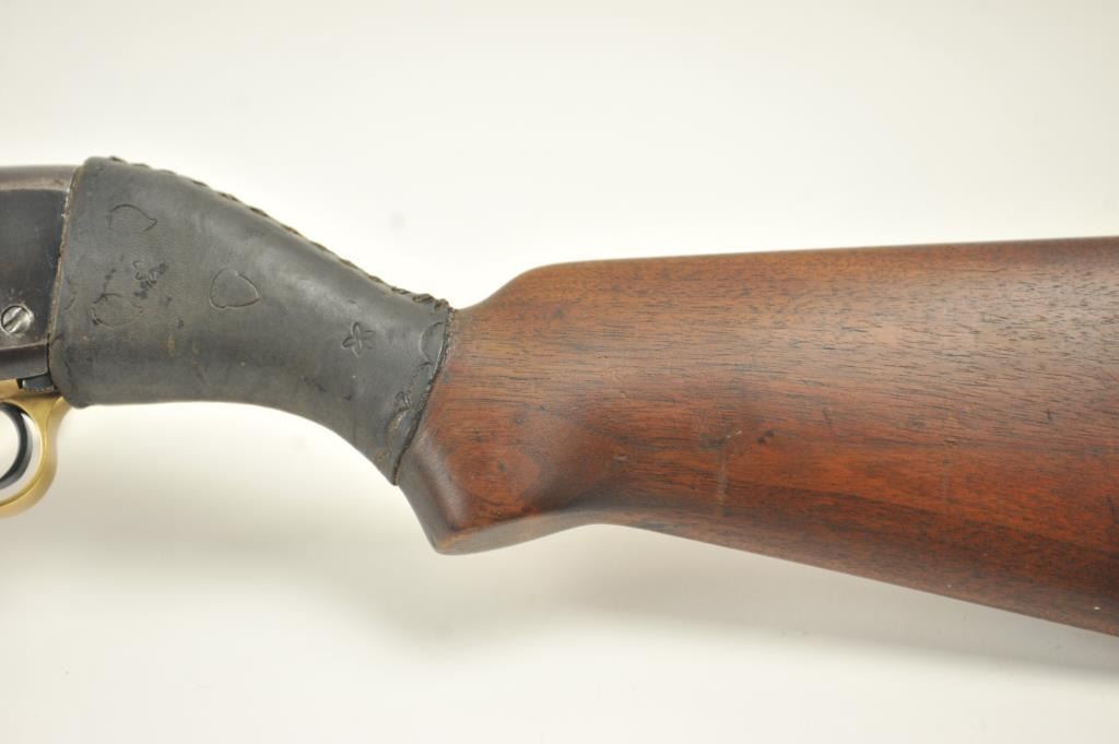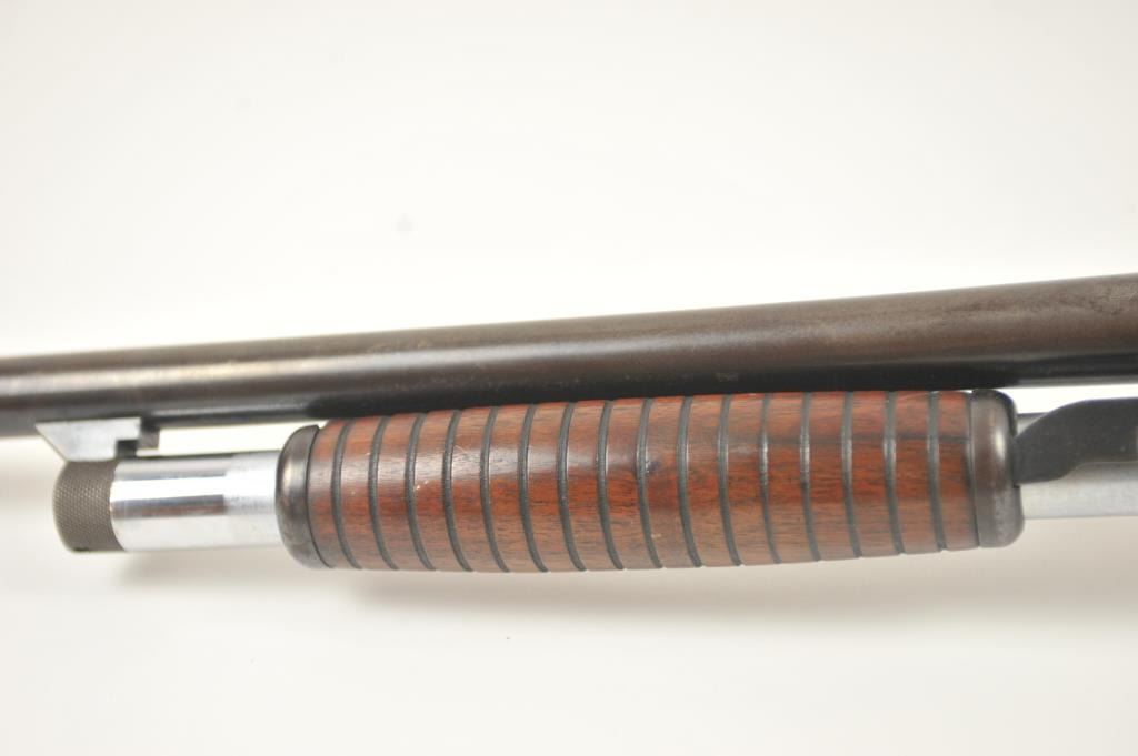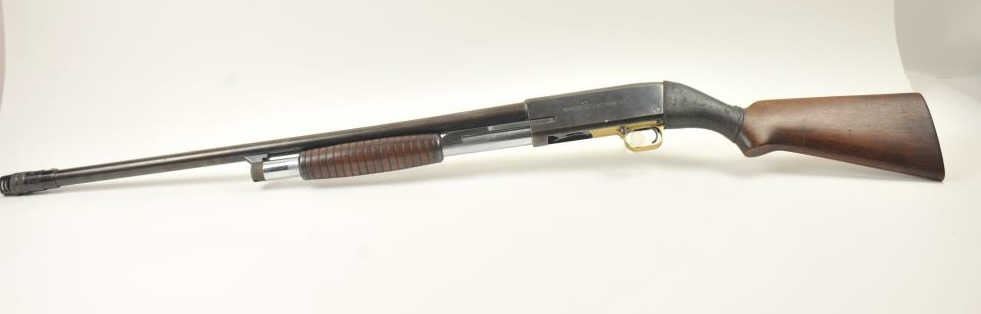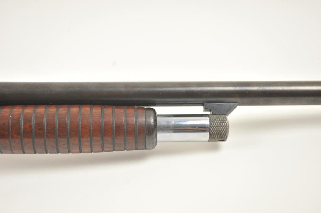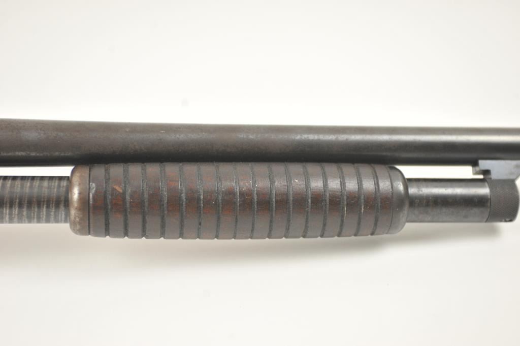 Lot of 2 Noble shotguns, first a Noble Model 40, #NSNV, 12 Ga., 28” barrel with Multi Choke, brass front bead sight and wooden stock with plastic butt plate. The shotgun is in good condition overall, showingapproximately 80-90% original finish with light freckling, bore is good, action is sticky. The stock is fair with a repair to the wrist, and the butt plate is slightly ill fitting. The second is a Noble Model 40A,#NSNV, 12 Ga., 28” barrel with Multi Choke, brass front bead sight and wooden stock with no butt plate. The shotgun is in good condition overall, showing approximately 80-90% original finish which has drifted to a brown patina, bore is good, action is good. The stock is fair with a repair to the wrist and is now covered in leather. Magazine tube and bolt have been chromed. (C&R/PPT) Est. $100-200