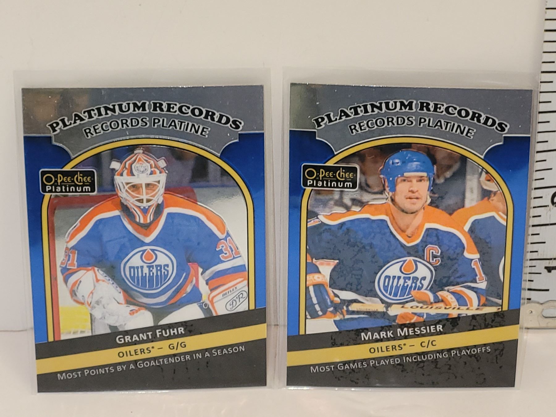 Lot of 2 OPC Platinum Records Hockey Cards - Fuhr & Messier