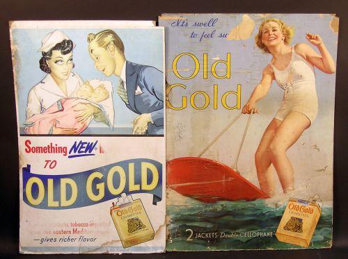 Lot of 2 Old Gold cigarette cardboard displays 42"x31"