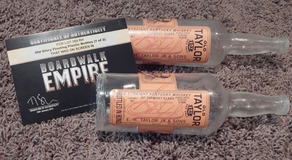 Lot of 2 Prop Resin Bottles with label used in opening credits of HBO series "Boardwalk Empire" with letter from studio.