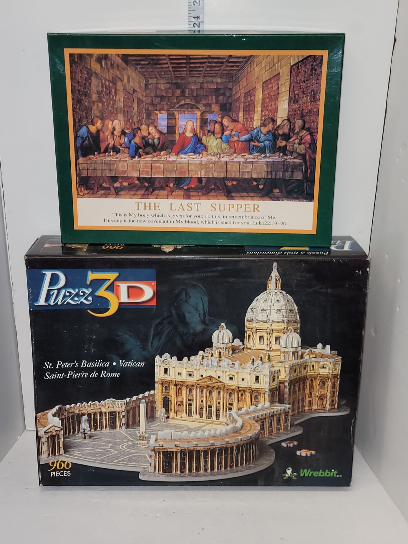 Lot of 2 Opened Puzzles - The Last Supper + 3D Vatican Puzzle - Unverified if complete