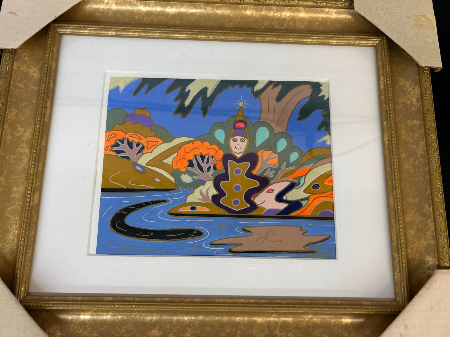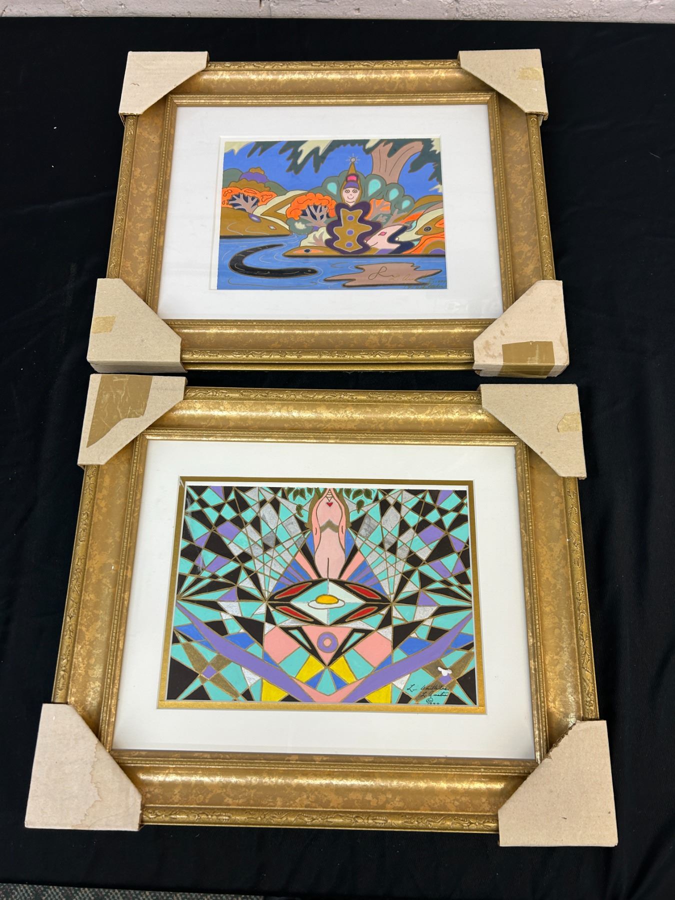 Lot of 2 Original Lillian Austin Framed Paintings in Gold Tone Frames, 15" x 17.5"