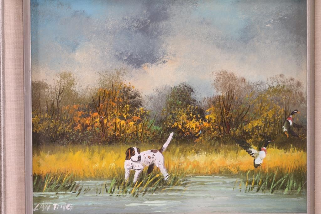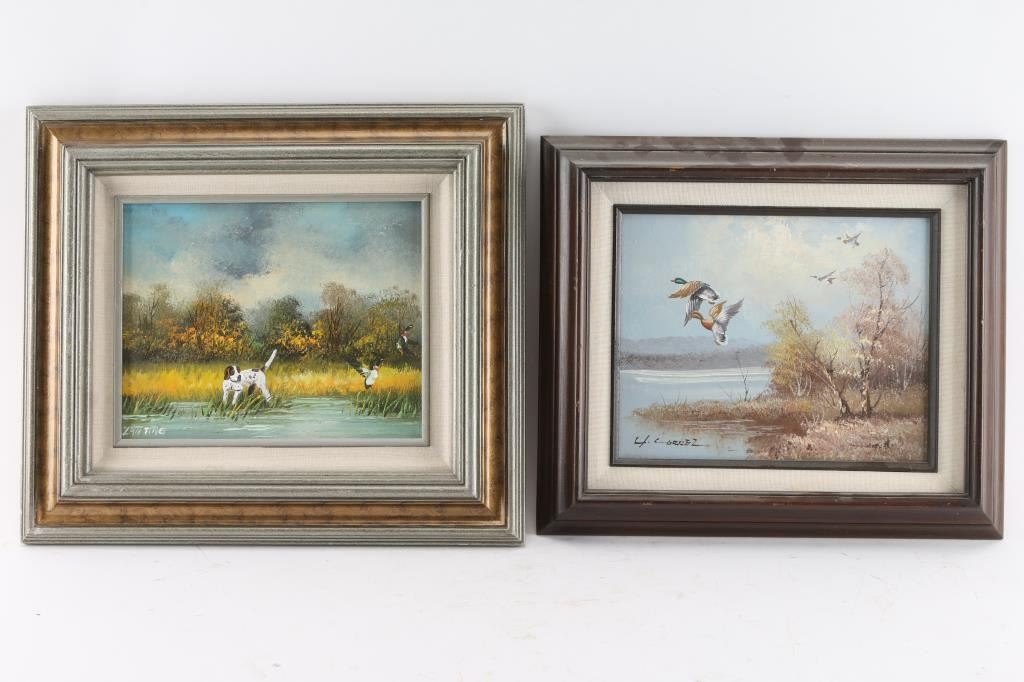 First is a Correz ducks in flight, 9 x 7 1/2". Second is a Lanting depicting hunting dog with ducks in flight, 9 1/2 x 7 1/2.