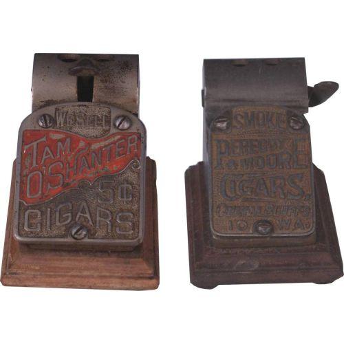 Lot of 2 Original Slant Front Cast-Iron Cigar Cutters