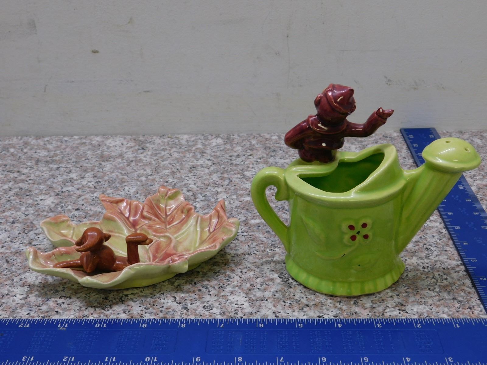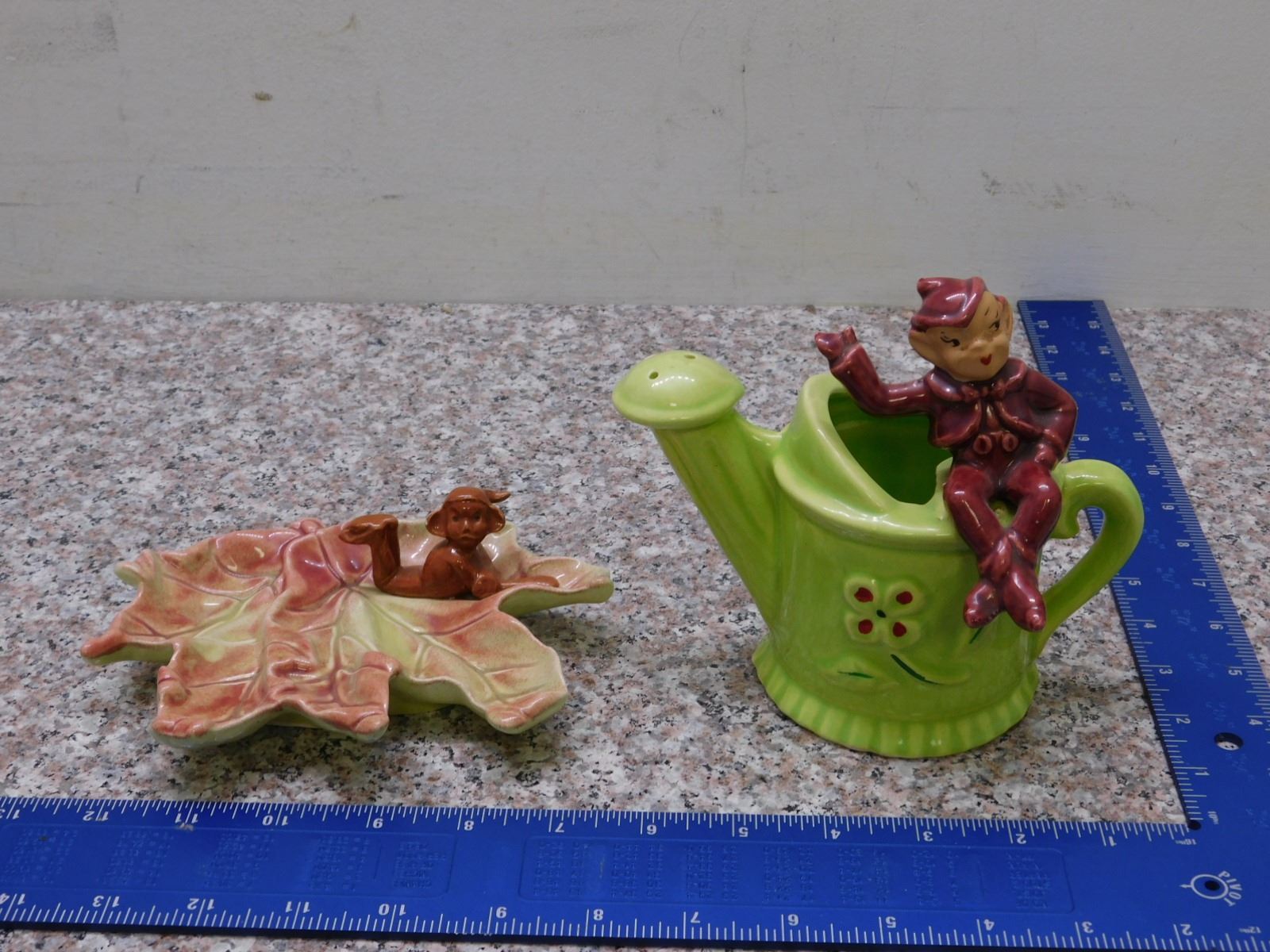 Lot of 2 Pixie Elf Planter and Tray California Pottery