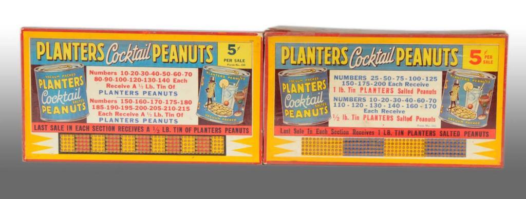 1930s to 1940s. Two variations of the same game punchboard with each punch costing five cents. Neither punchboard has been used and are still wrapped in original cellophane. Condition (Mint). Size Each: 8" x 4" x 1/2".