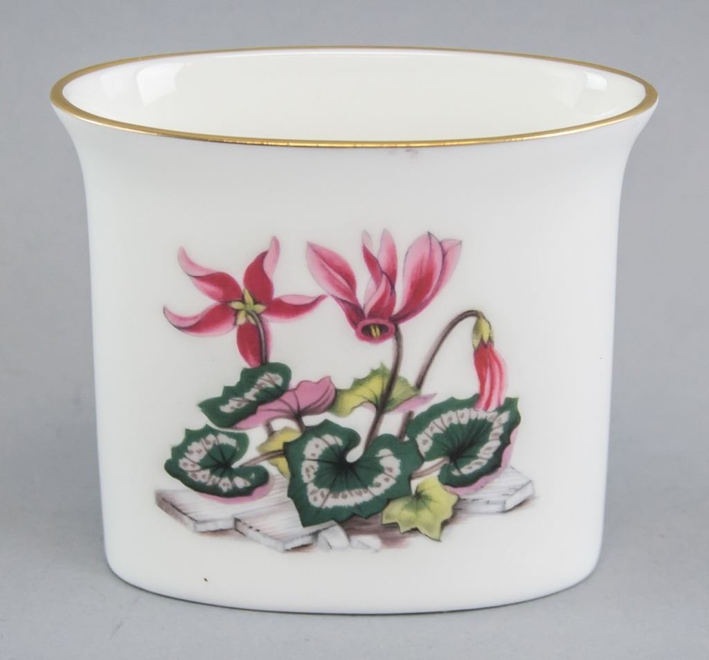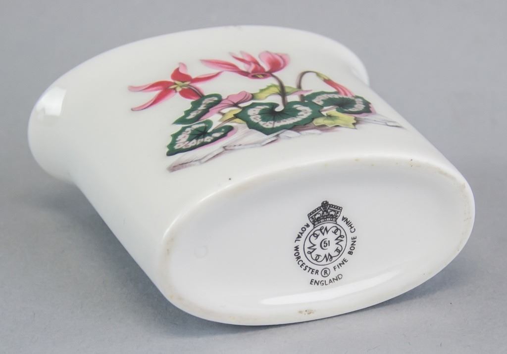 Lot of two porcelain cigarette holders. Painted with flowers with gilded lip. Stamped "ROYAL WORCESTER FINE BONE CHINA ENGLAND" on the base of one. The other stamped "R KPM Krister Germany". 6 x 7 cm. 159 grams (total).