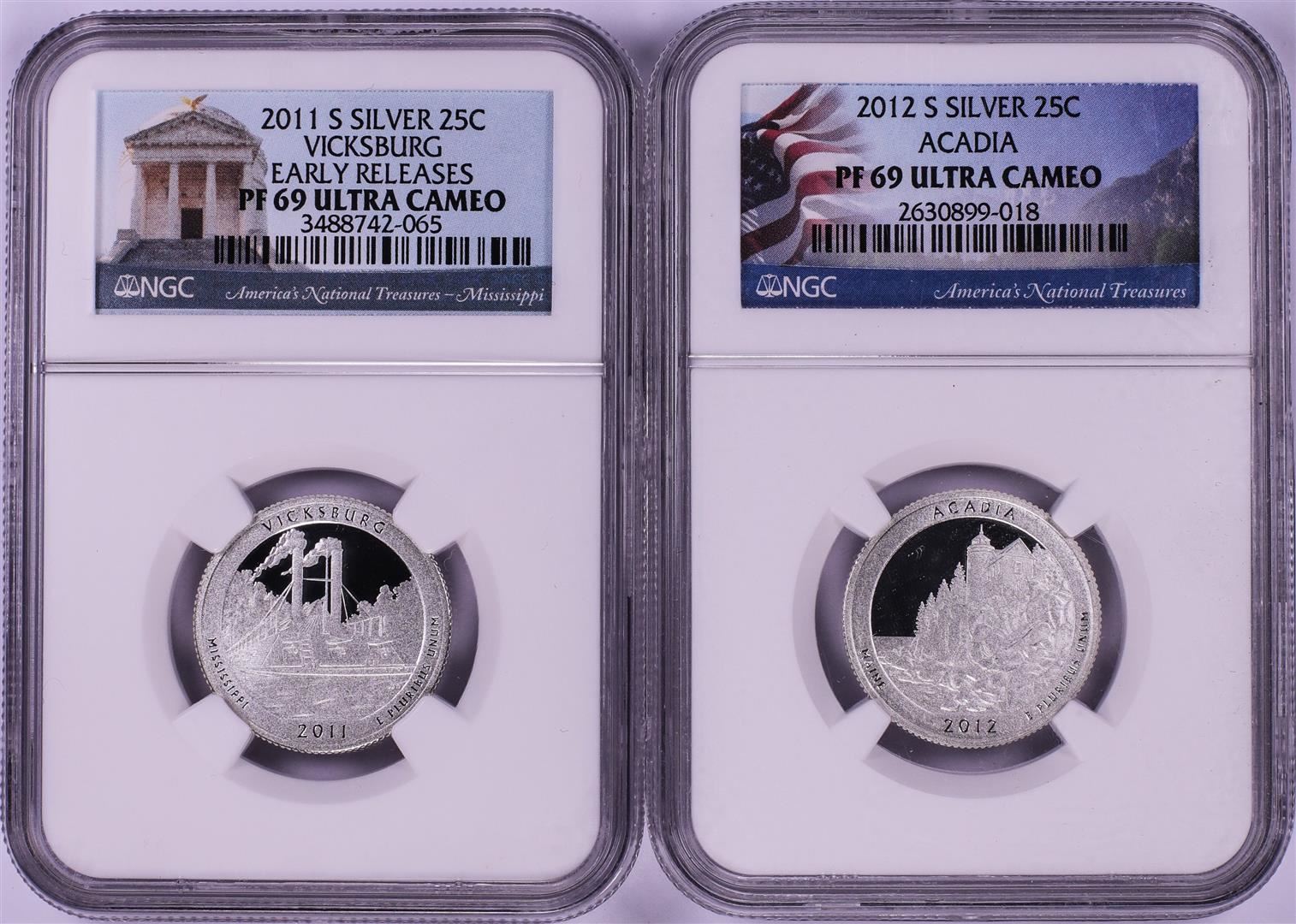 Lot of (2) Proof Silver America's National Park Quarter Coins NGC PF69 Ultra Cameo