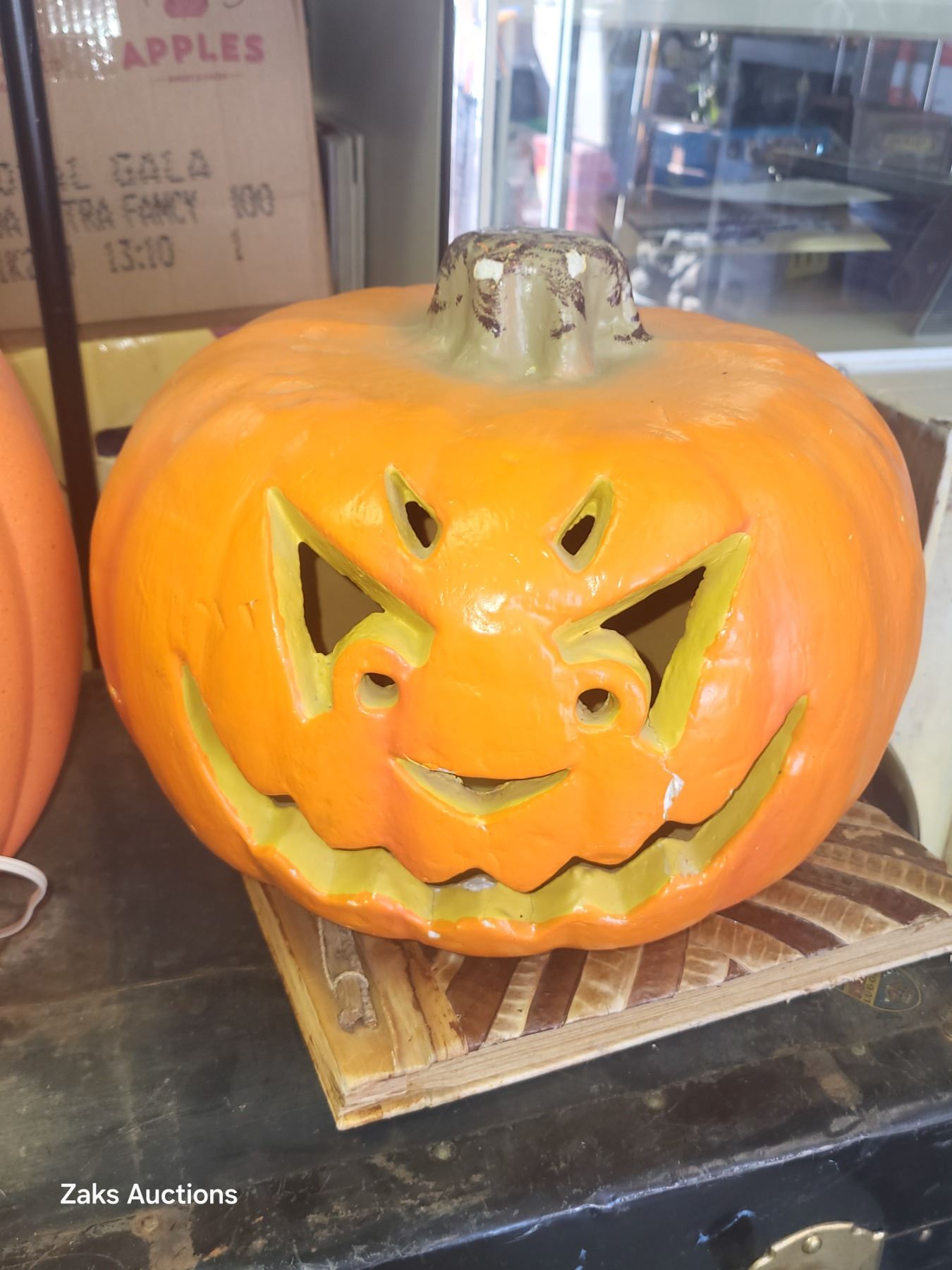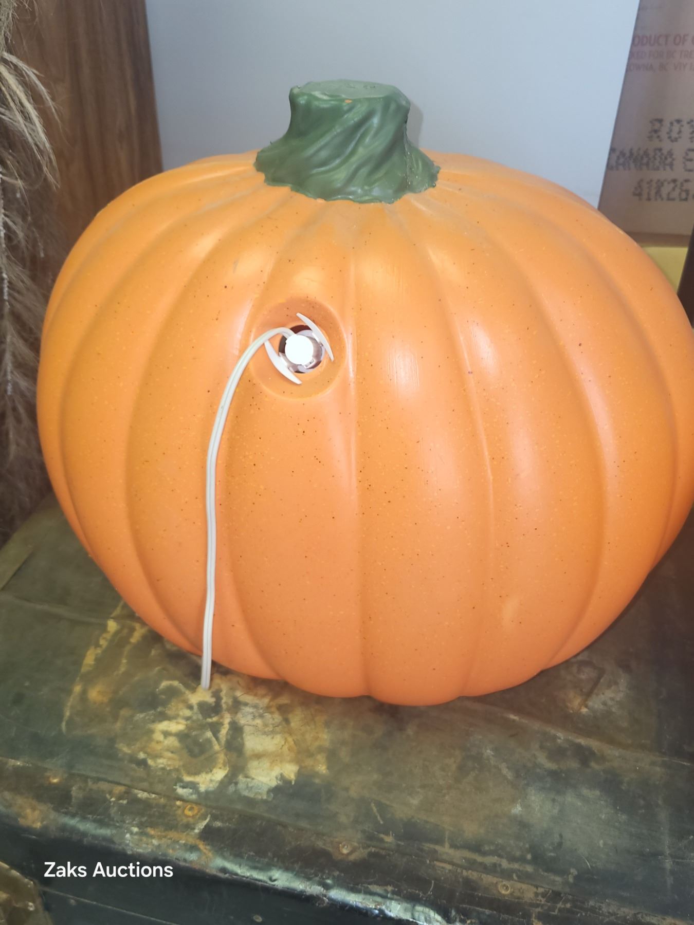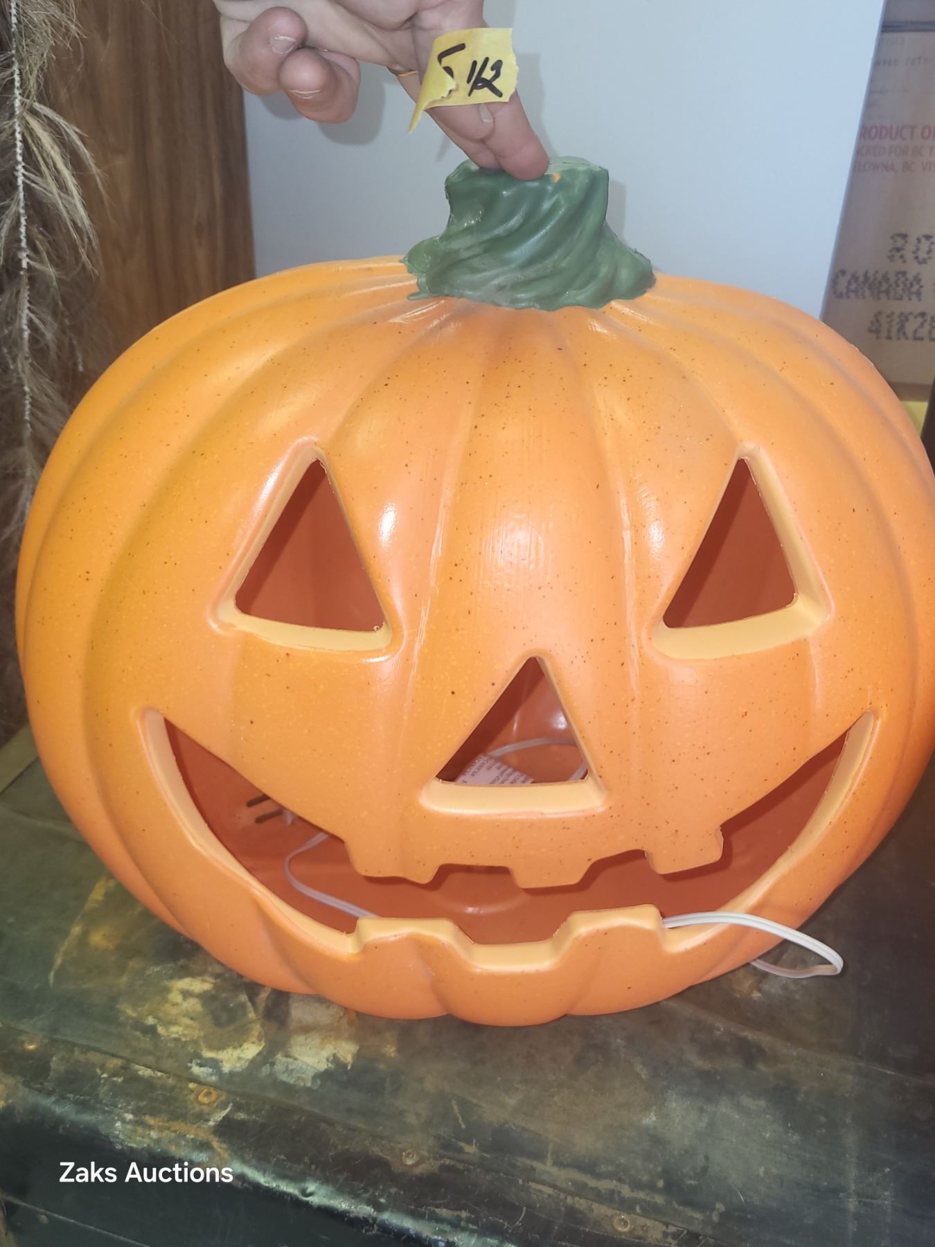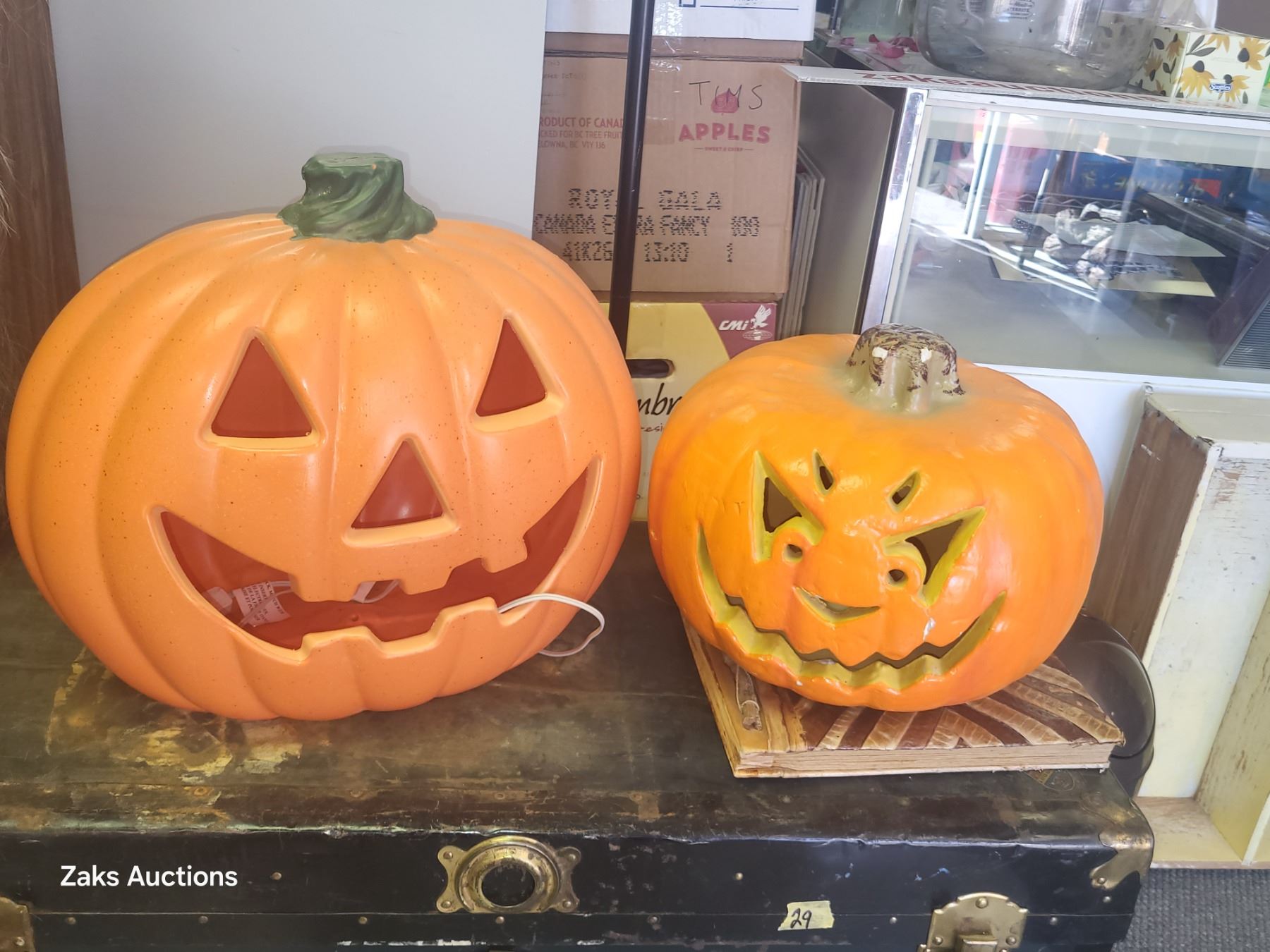 Lot of 2 Pumpkin Decor - one lights up, other one side is face other is of bats