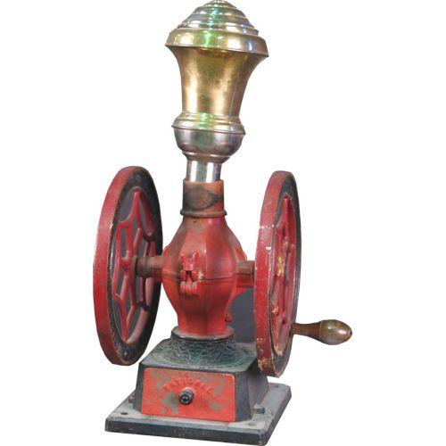 Lot of 2 Rare National Coffee Grinders ornate w/ brass hoppers - unrestored