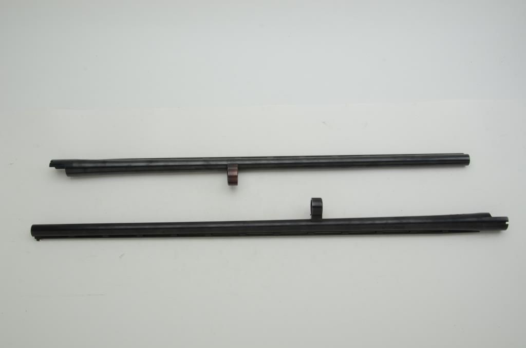 Lot of 2 Remington 12 gauge shotgun ventilated rib barrels only; one 28”, the other 30” both for 2-3/4” shells and both marked “L.H.”; the 30” barrel is FULL choked, the 28” barrel is MOD choked; both have very good to fine bores, both show considerable blue with some spots of surface rust from storage. Est.: $50-$75.