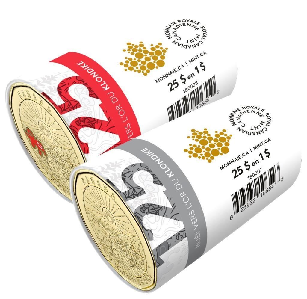 Lot of 2 Rolls x 2021 $1 125th Anniversary of the Klondike Gold Rush Special Wrap Roll (Coloured) & (PLAIN) 50 Coins Total