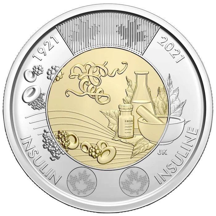 Lot of 2 Rolls x 2021 $2 100th Anniversary of the Discovery of Insulin Special Wrap Roll (Coloured)& (Plain) 50 Coins Total -Mint Wraps