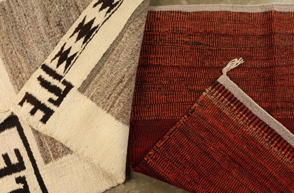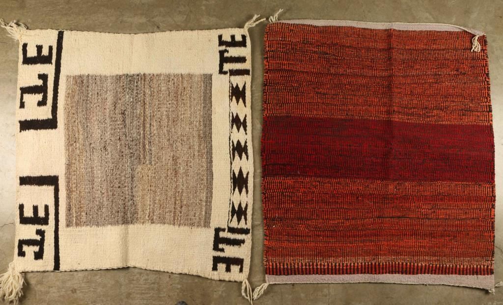 (1) Black White saddle blanket with "TE" on the corners with tassels measures 31"x31" (1)Orange & Red Saddle Blanket measures 35"x31"