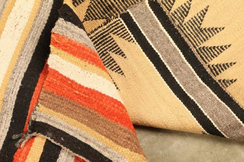 (1) Brown Black and White measures 32"x29 excellent condition (1) Striped red, black, white and brown measures 35"x28" fair condition misshapen and some stitching is loose.
