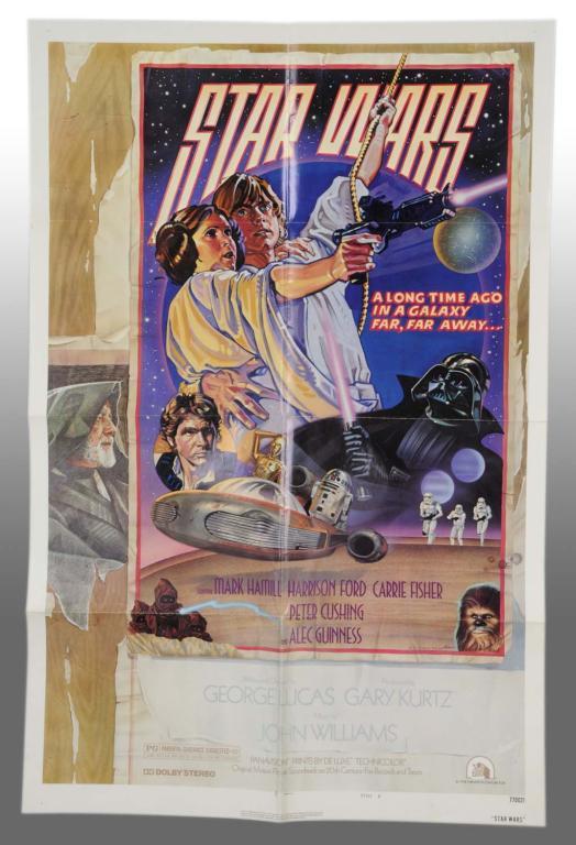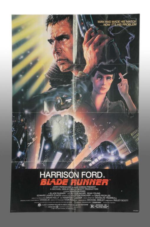 Description Includes one folded Star Wars poster and one Harrison Ford in Blade Runner. Both posters are folded in eight squares. Condition (Excellent). Size Both: 41" x 26".