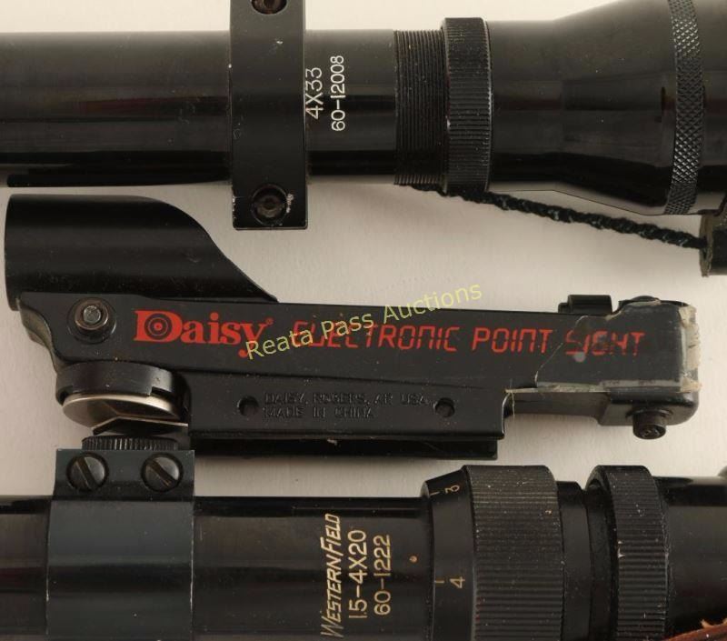Including a Western Field 15-4x20 and a 4x33. Also includes a Daisy Electronic Point Sight.