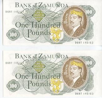 This is a lot of 2 prop bank notes from the "Bank of Zumunda" screen used in the 1988 Eddie Murphy film "Coming to America." This lot comes with a letter of authenticity from Star Wares.