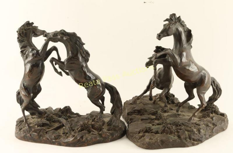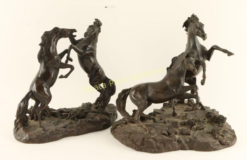 From the Franklin Mint Gallery, "Challenging Stallions" measures 10"x11" and "Startled" measures 11 1/2" x 10" by Lanford Monroe.