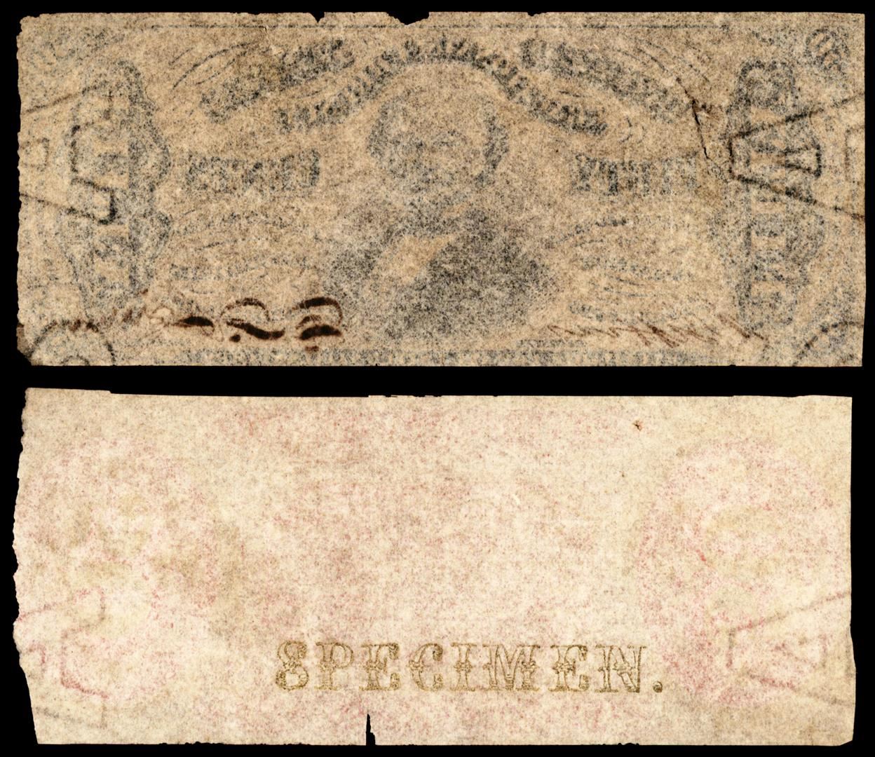 One Lot of (2) Specimen Third Issue 50 Cents Fractional Currency Notes.