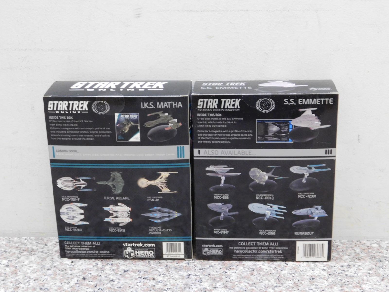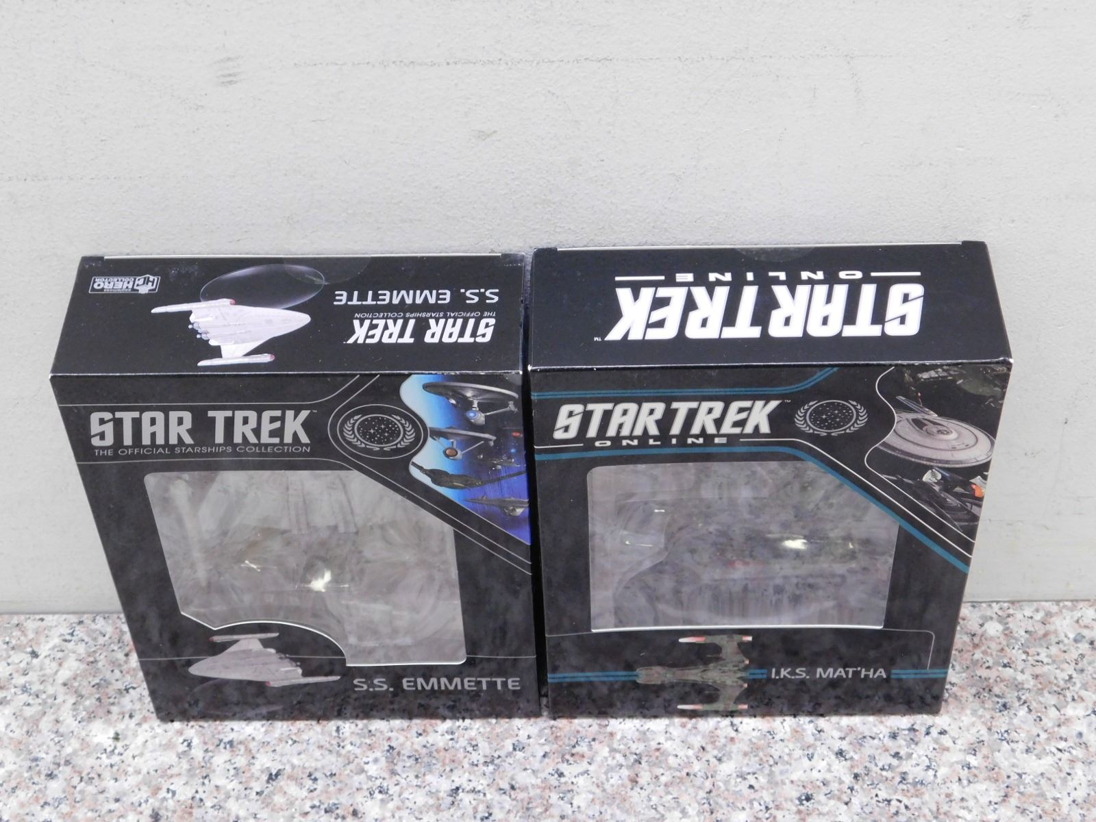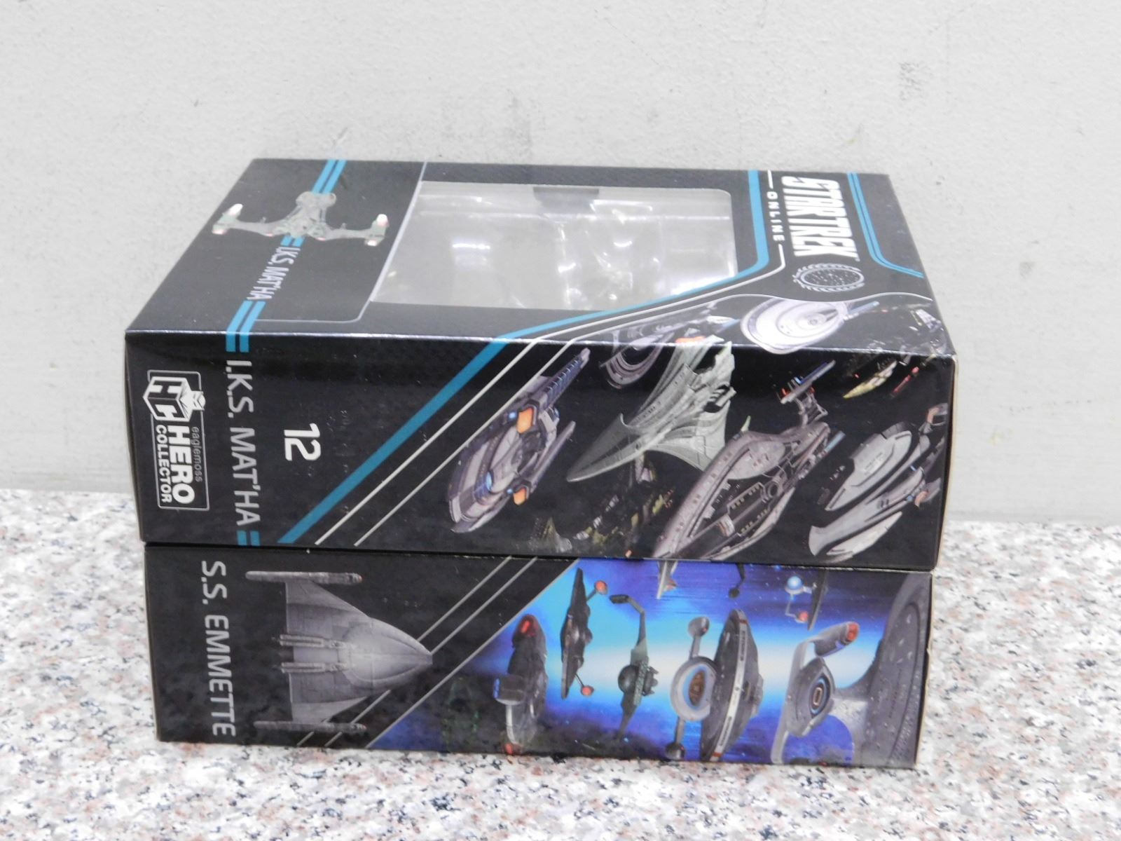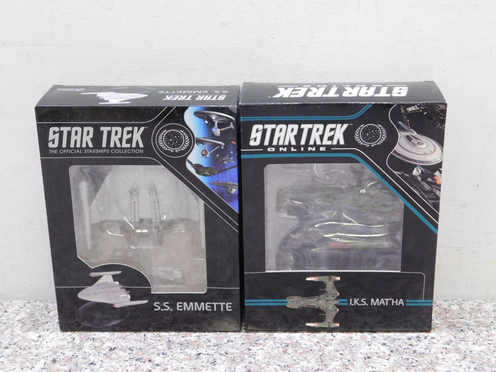 Lot of 2 Star Trek I.K.S. Mat'Ha and S.S. Emmette Online and Official Starship Collection Replicas