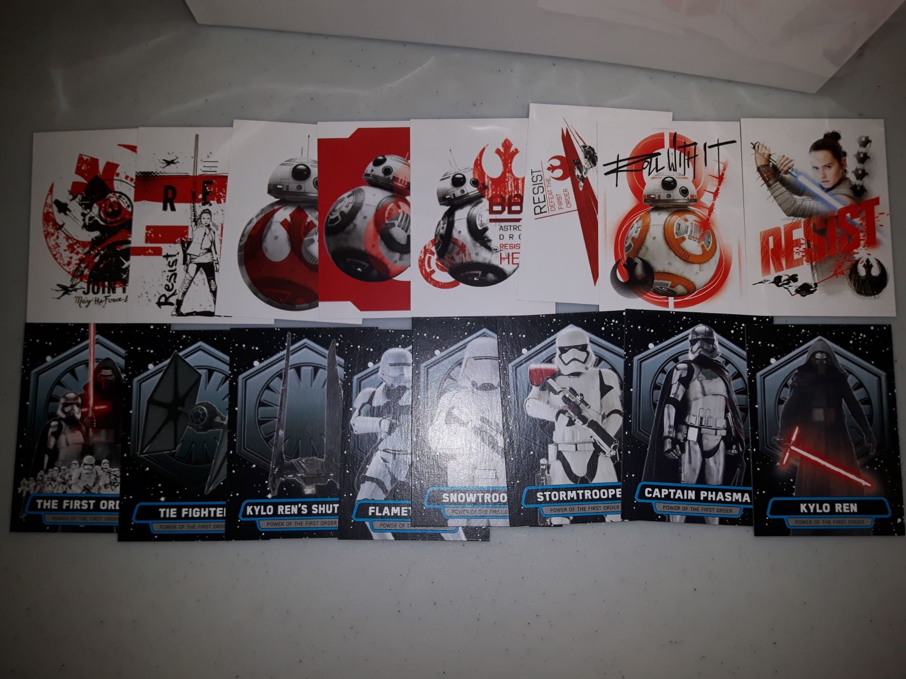 Lot of 2 Star Wars Insert Sets- Power of the First Order - 8 cards The Last Jedi Resist - 8 cards