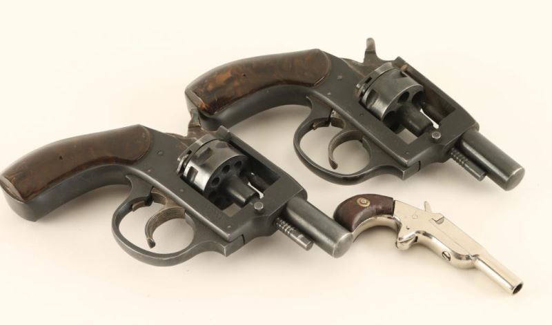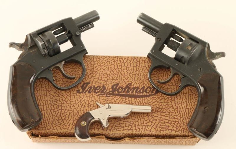 (1) Iver Johnson Starter Mod. 56A .22 Cal with a 2 1/2" barrel-8 shots. In original box with instructions. (1) Iver Johnson .32 Cal. Also included is a mini pistol and several blank cartridges.