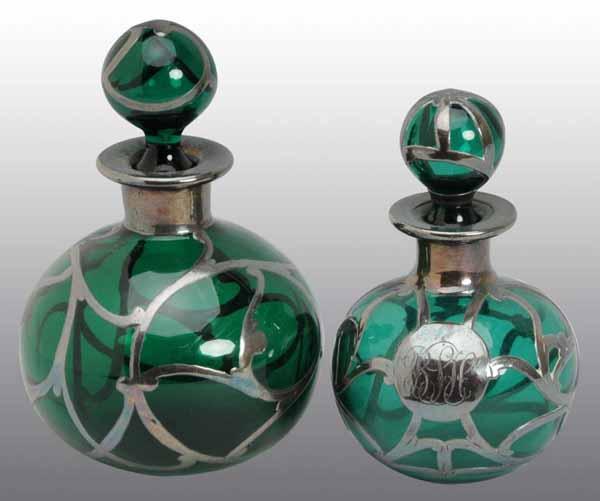 Description Both green glass and include original stoppers with no damage. Condition (Excellent). Size Largest: 3 - 3/4" T.