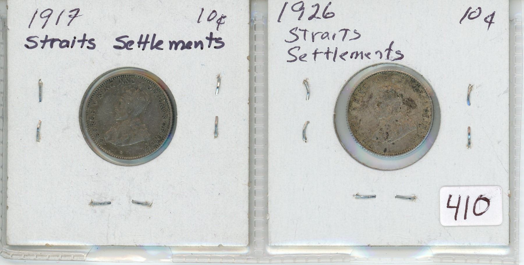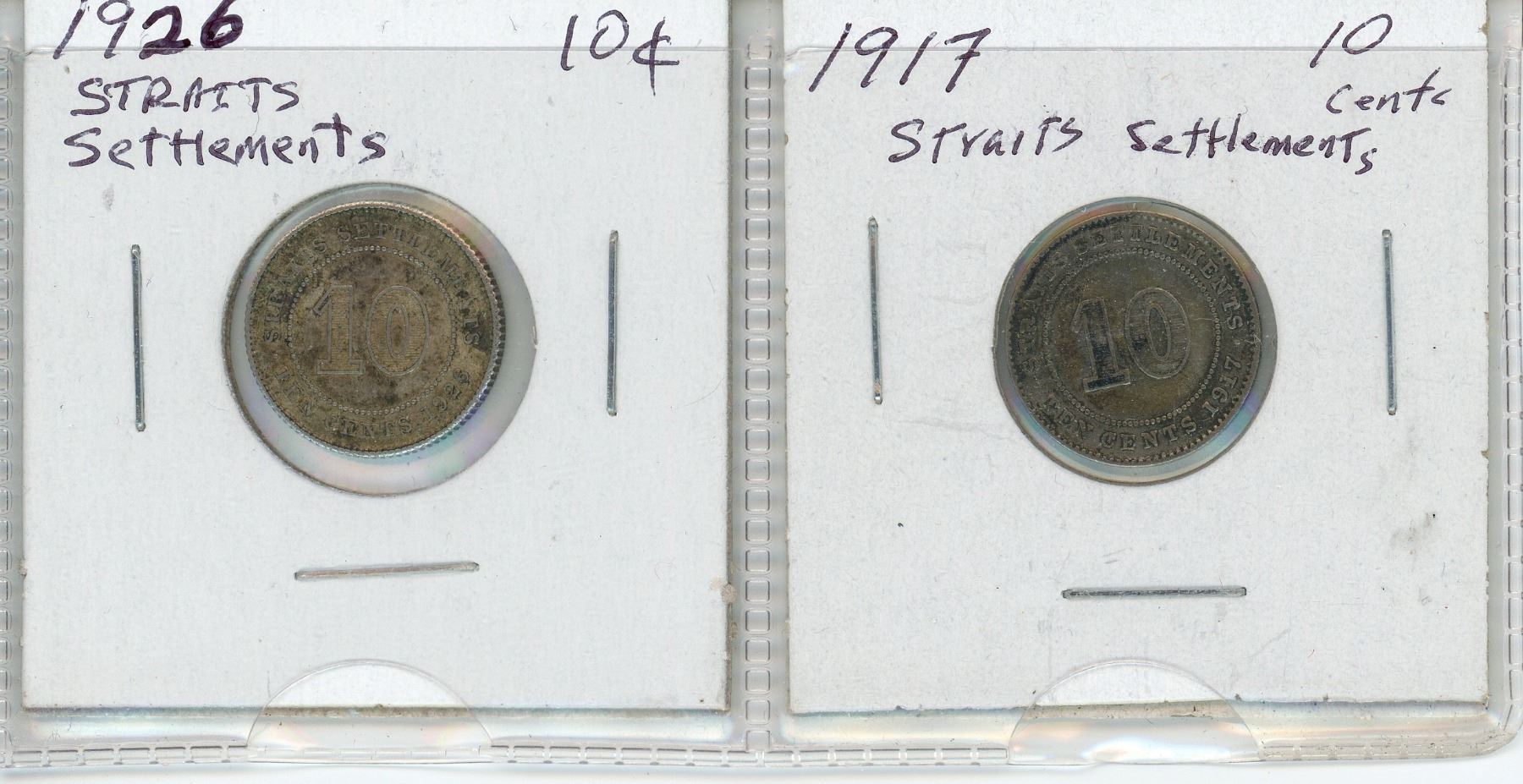 Lot of 2: Straits Settlements 1917 & 1926 Ten Cents