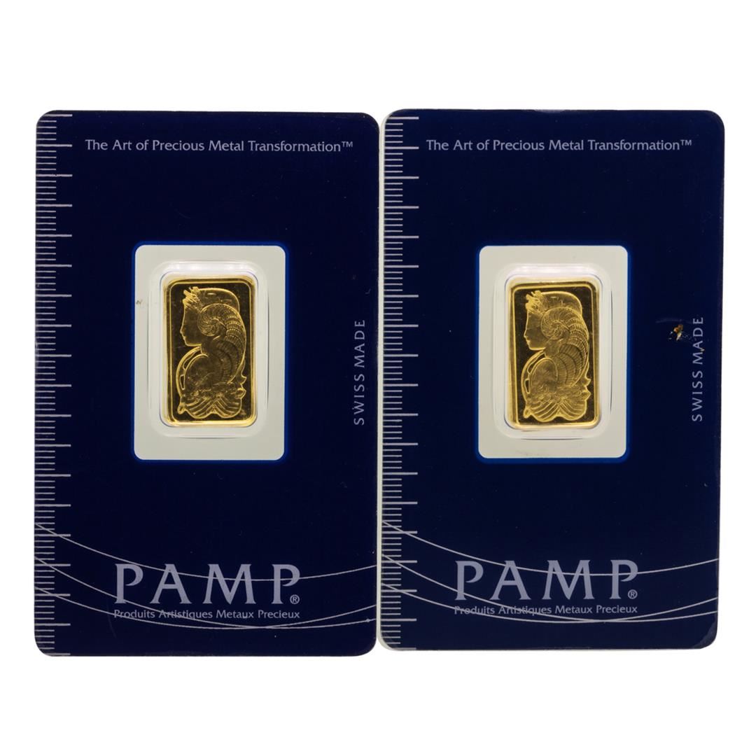 One Lot of (2) Suisse 5 Gram Fine Gold Pamp Gold Bars.