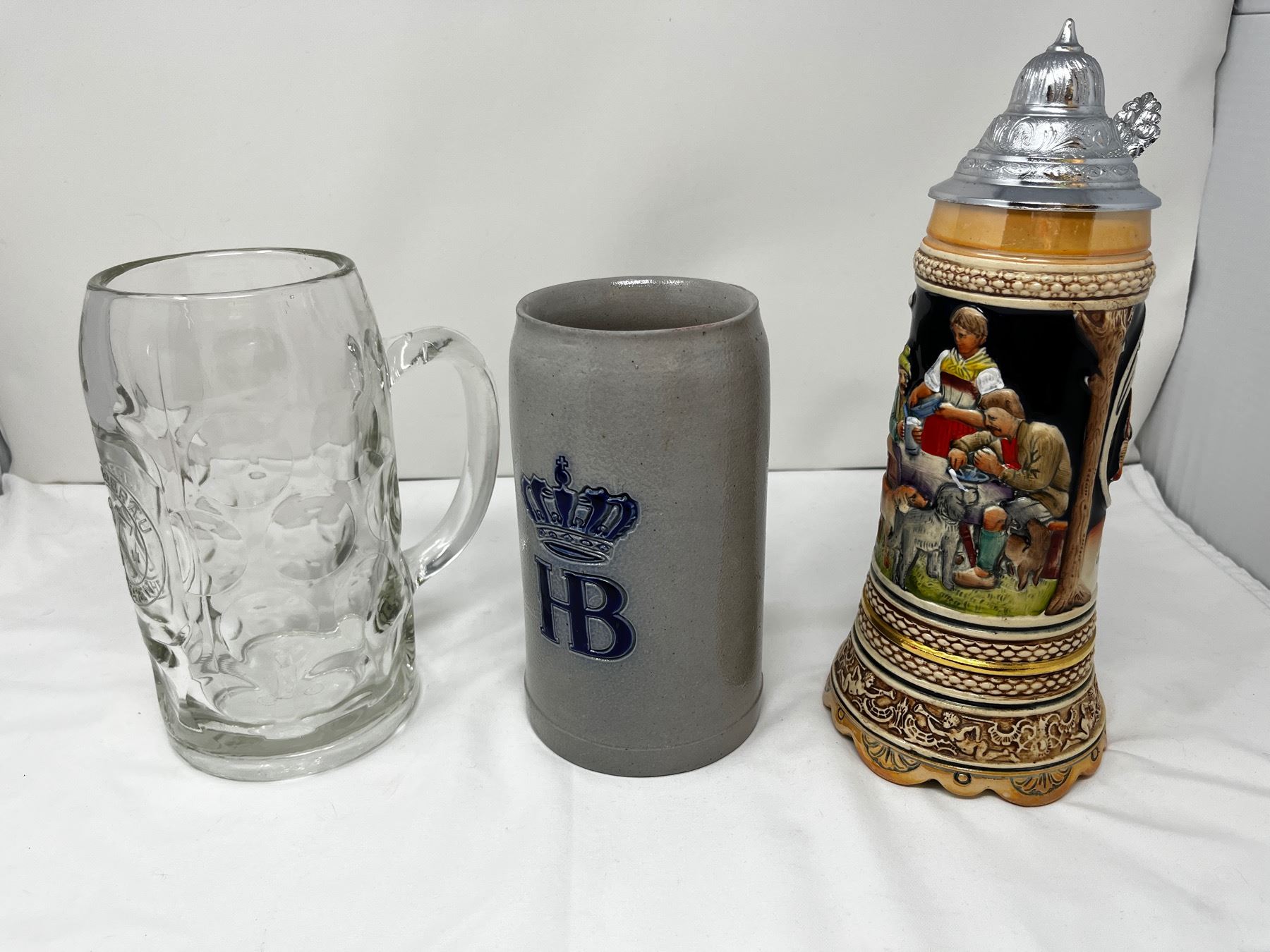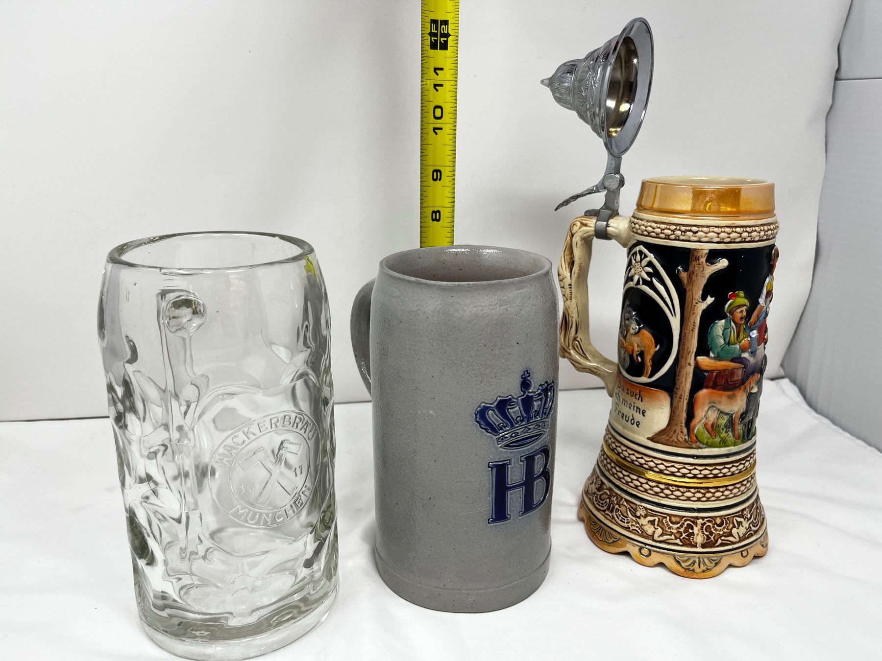 HB hakerbau tankard and a german beer stein with built in music box.