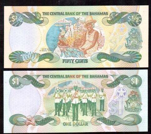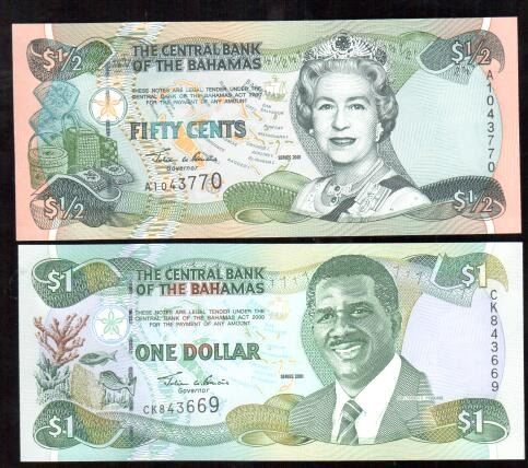 Lot 364; Lot of 2 - The Central bank of The Bahamas Banknotes 2001 Fifity Cents, One Dollar