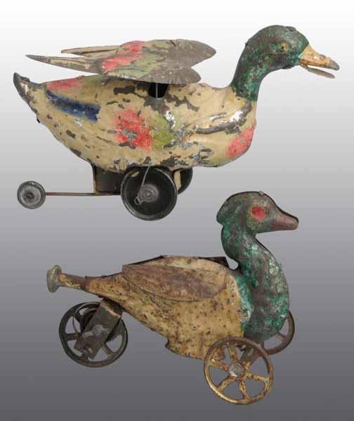 Description German. Working. Both are wind-up and have moderate overall paint loss and wear. Condition (Very Good). Size Largest: 6" L.