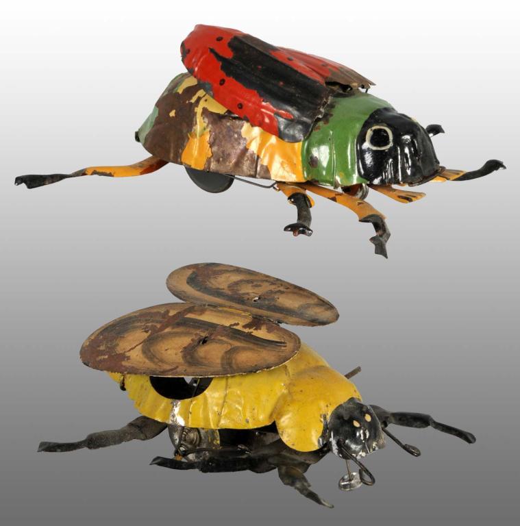 Description German. Working. Both marked "Made in Germany". Includes one fly with flapping wings and one beetle with movable wings. Moderate paint loss on body of beetle and minor loss to fly. Condition (Very Good - Excellent). Size Both: 7" L.