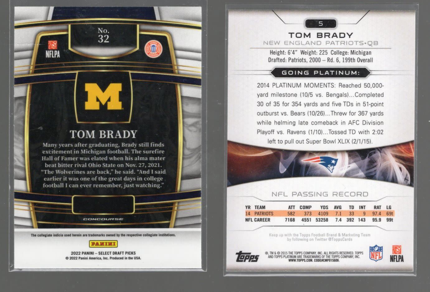 Lot of 2 Tom Brady Cards 2015 Topps Platinum #5 & 2022 Select Draft Picks #32