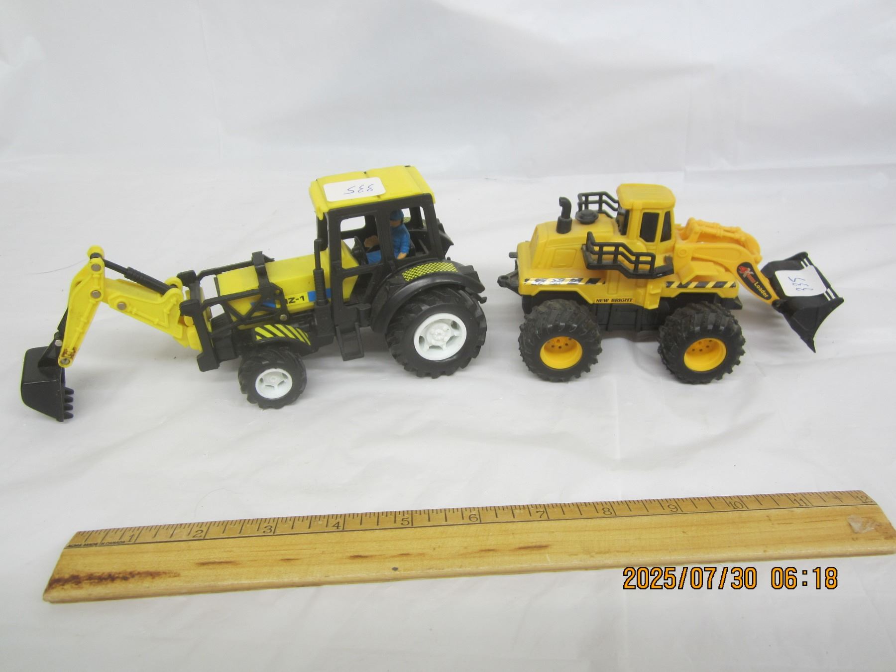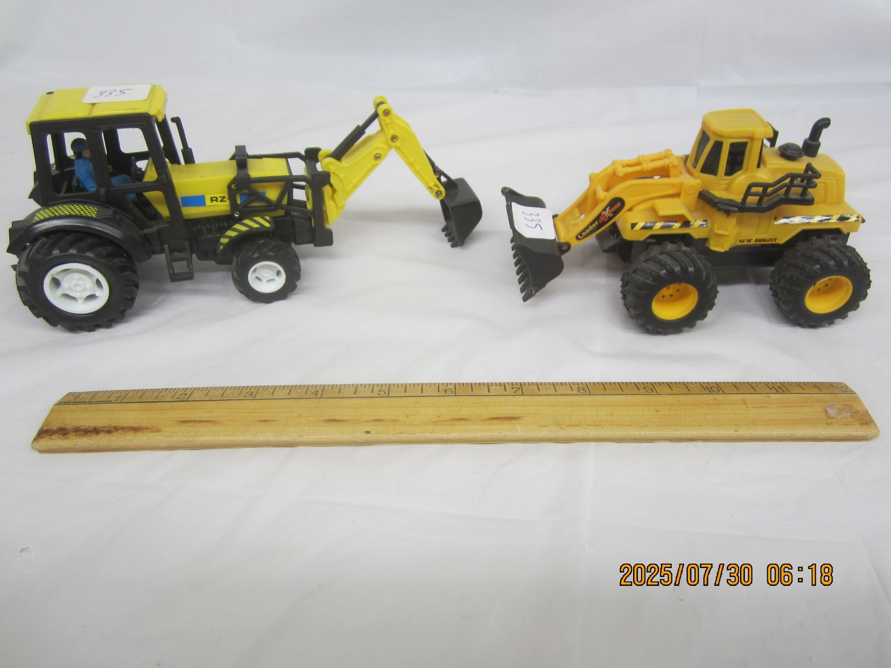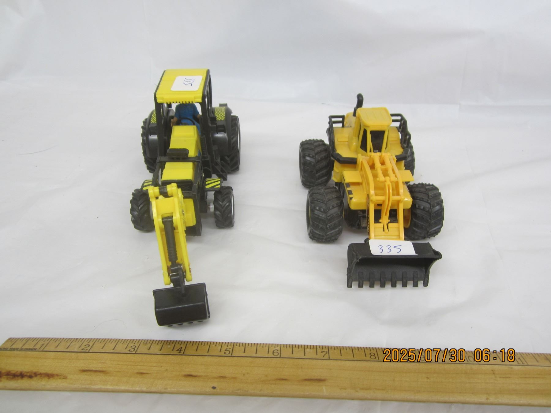 Lot of 2 Toy Tractors Loader and Tractor with Backhoe on the Front