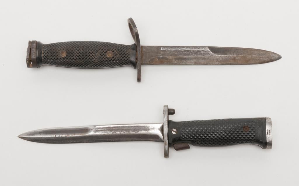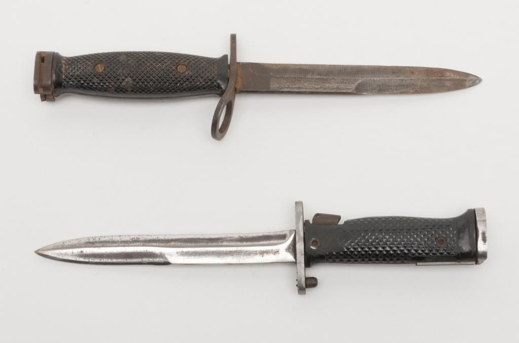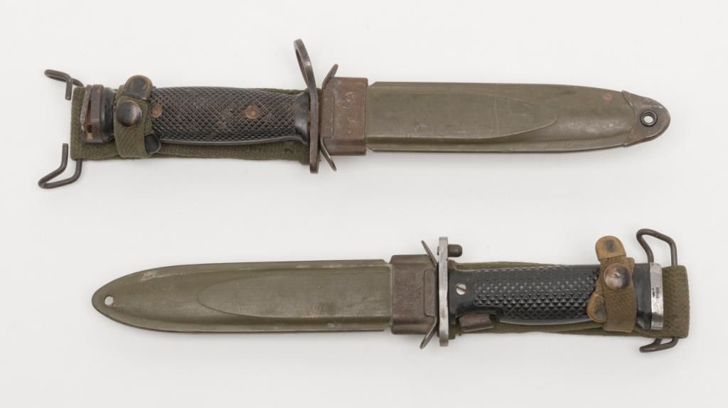 Lot of 2 U.S. military bayonets with M8A1 scabbards. Est.: $75-$125.