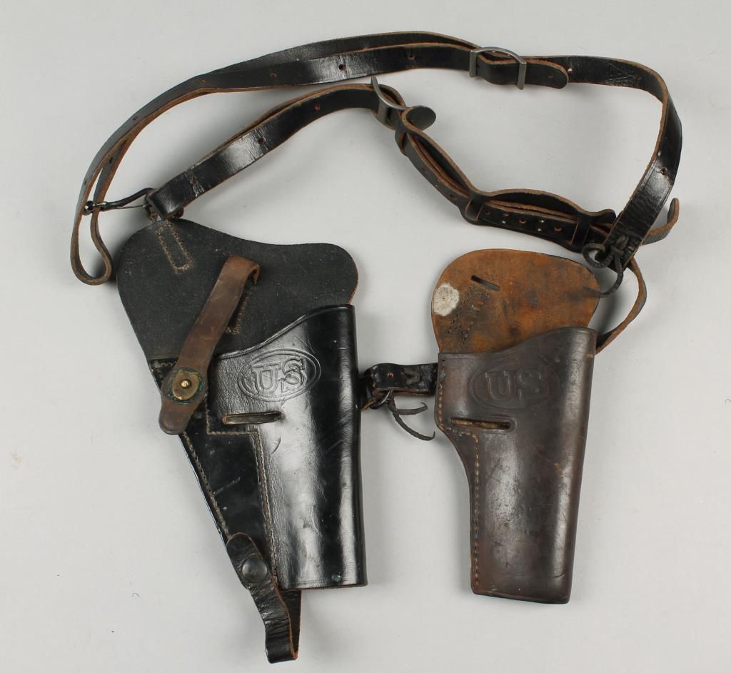 Including: 1 rare US shoulder rig and a smaller US holster stamped 'USMC Boyd' 1943