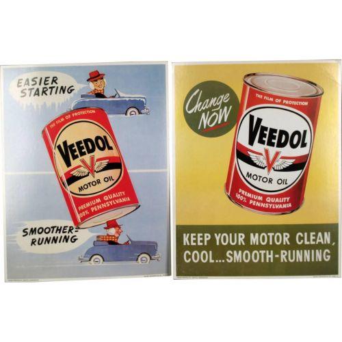 Lot of 2 Veedol Cardboard Signs 1958 NOS each 14" x 18"