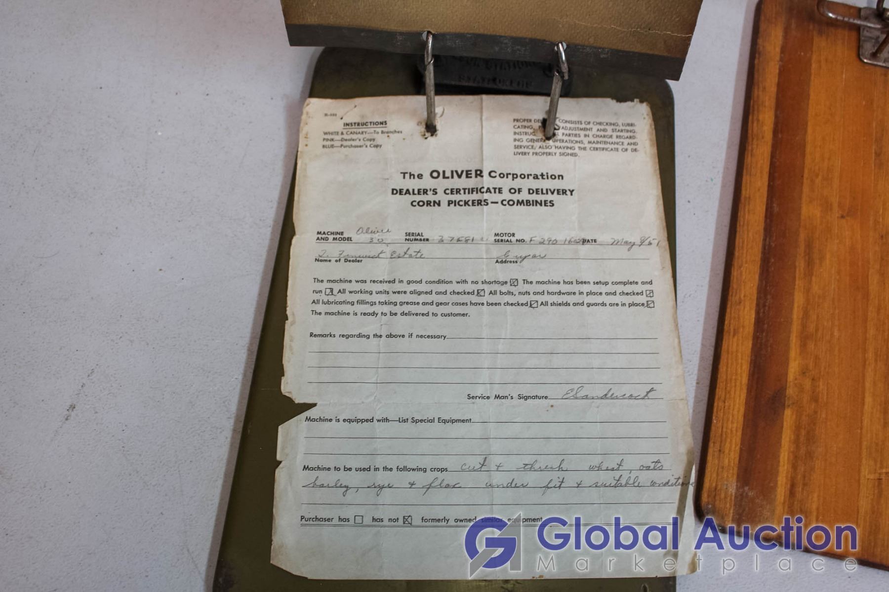 Lot of 2 Vintage Clip Boards w/Oliver Delivery Slip from 1951