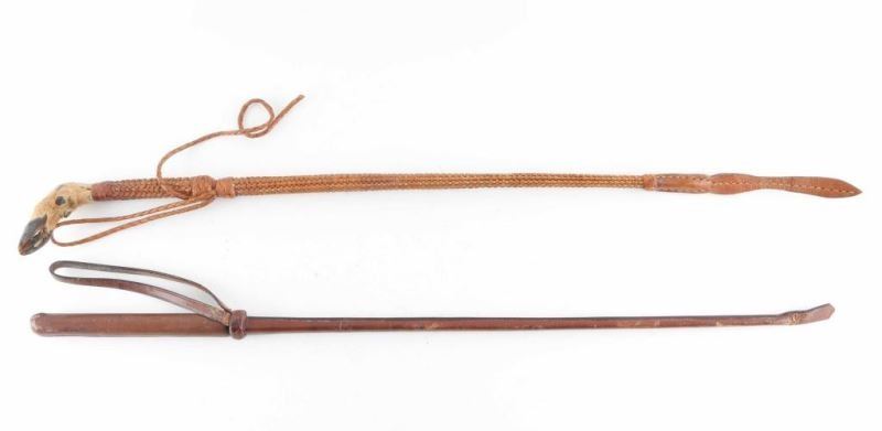 (1) Hoof handle braided crop with spike inside (1) Leather Crop with interior spike