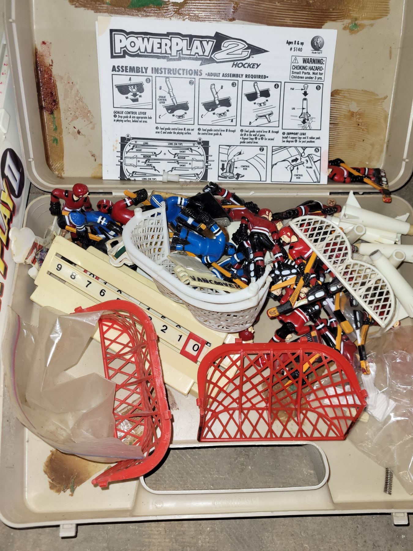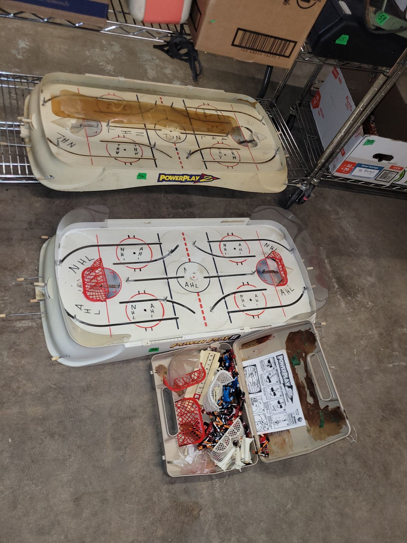 Lot of 2 Vintage Tabletop Hockey Game wtih Bucket of Pieces