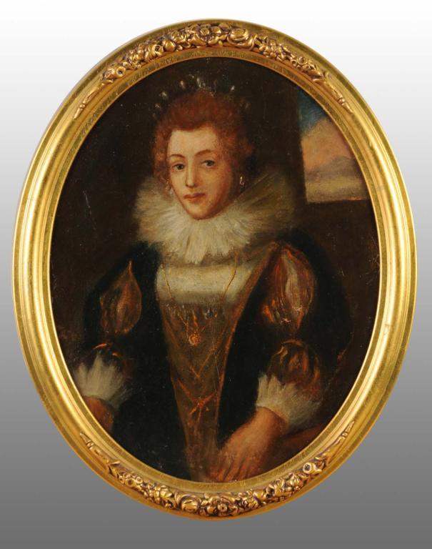 Description 18th/ 19th Century. Oil on canvases of a man and woman in 17th century attire. Relined. Size Both: 21 - 3/8" x 16 - 5/8".
