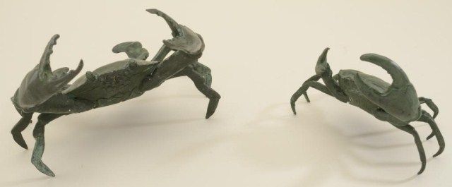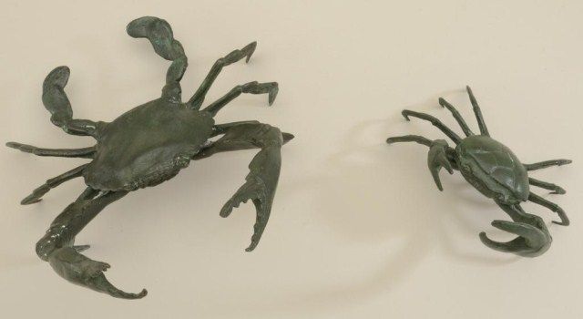Lot of 2 bronze crabs from Petersen Den’s bar area; nice patina; 19” across and 17” across. From the estate of Robert Petersen. Est.: $100-$300.