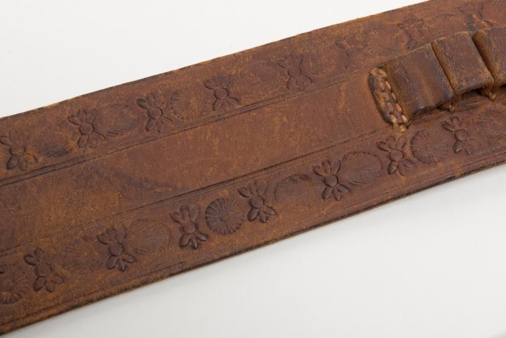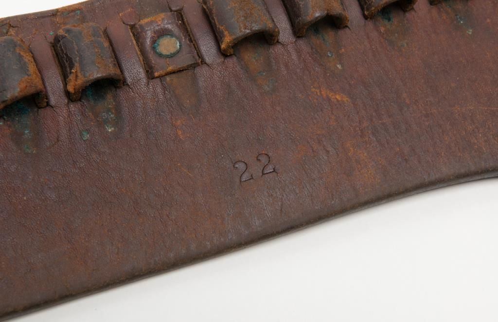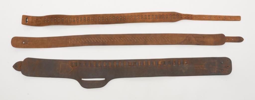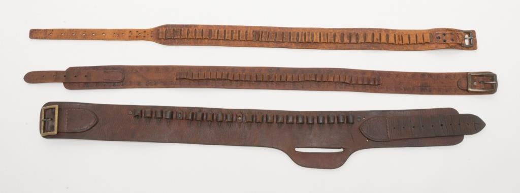 Lot of 2 cartridge belts and 1 gun belt with harness buckles from the old west era. Est.: $150-$300.
