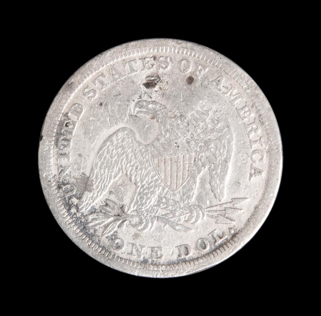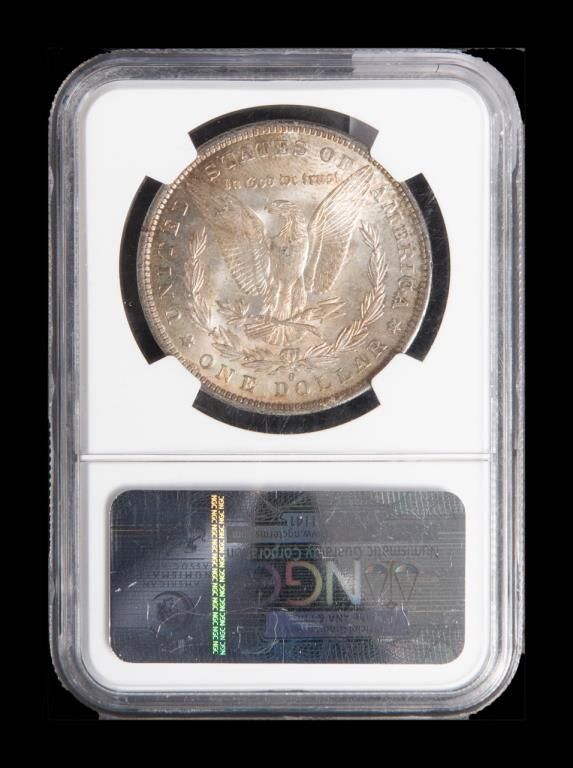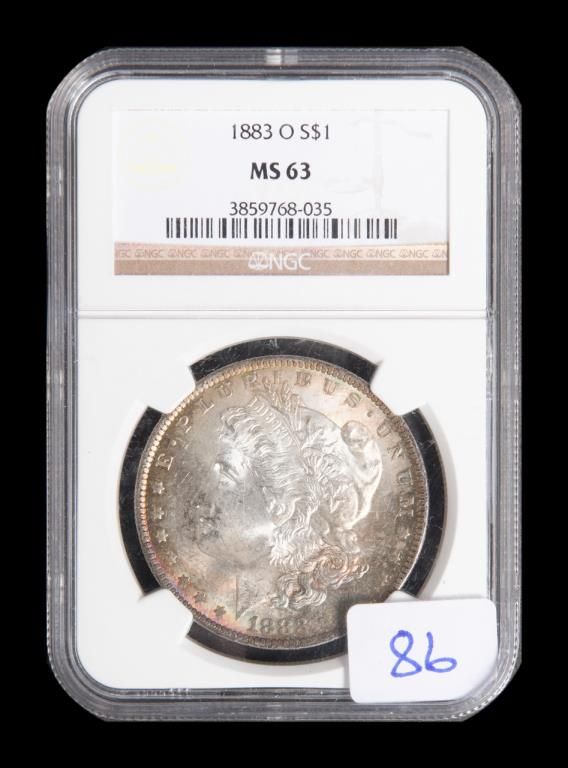 Lot of 2 coins including an 1860 U.S. Seated Liberty Dollar, rough but a scarce date and a U.S. Morgan Silver Dollar dated 1883-O, NGC Graded MS-63. Est.: $120-$170.