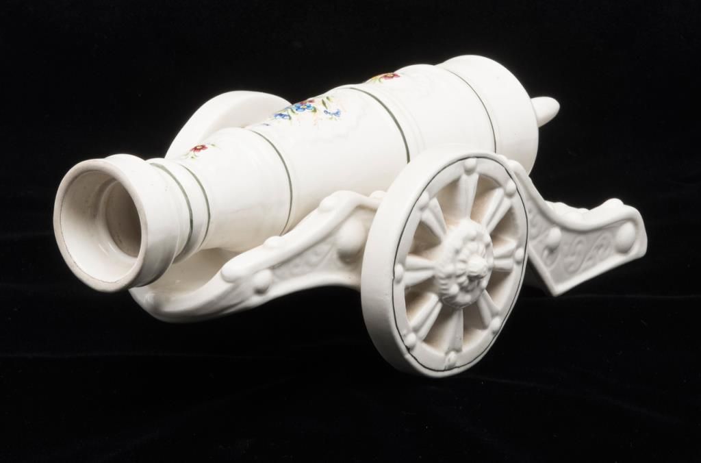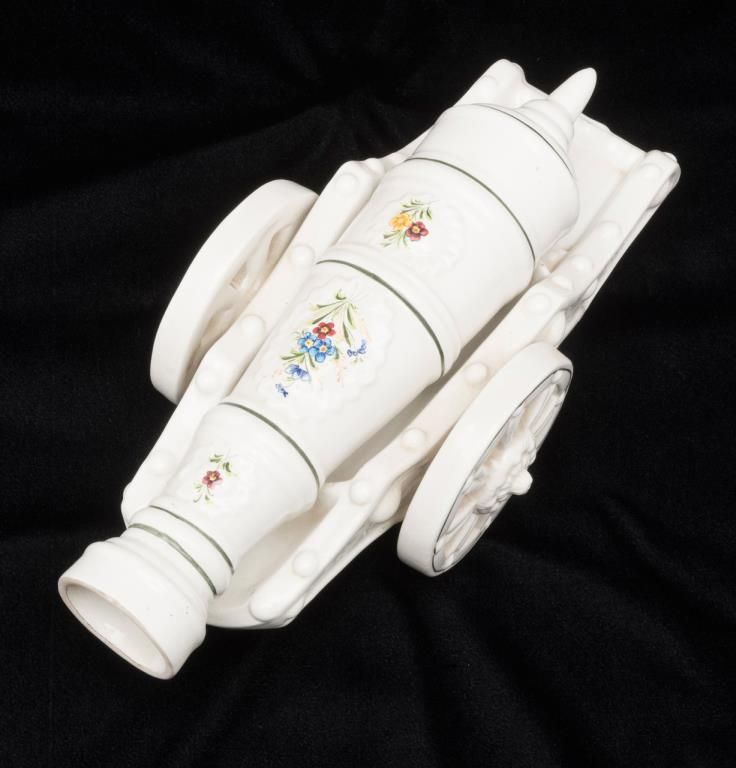 Lot of 2 collectibles including a Special Edition porcelain Mallard Duck, approx. 8-1/2” in height and a porcelain cannon and carriage, approx. 12” in length, made in Italy. Est.: $50-$75.