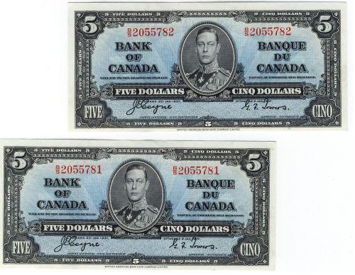 Lot of 2 consecutive 1937 $5 notes. BC-23c B/S2055781-5782. Both Choice uncirculated.