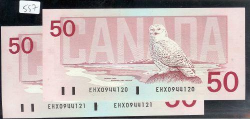 Lot of 2 consecutive BC-59aA 1988 $50 EHX0942120 and 121. Below 1,7M. Scarce. Both notes are Gem!
