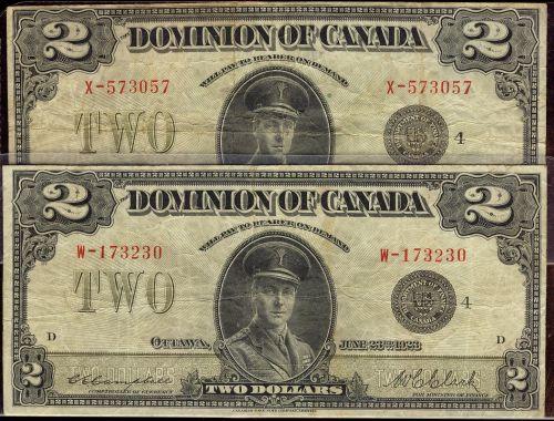 Lot of 2 different 1923 $2 notes. Both DC-26l, includes series W and X. Both notes grade F+ or bette